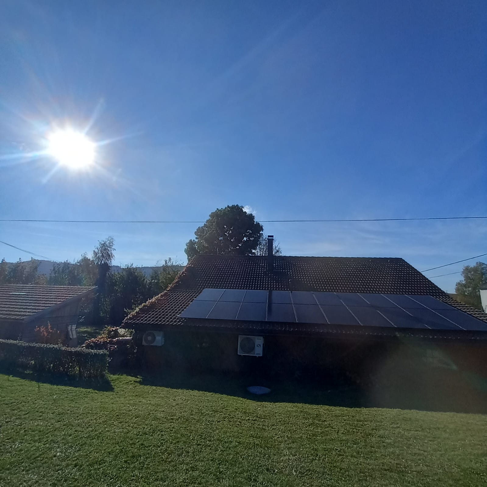 Instalace fotovoltaické elektrárny na pultové střeše rodinného domu o výkonu 8,5 kW. Střídač 8 kW, bateriové úložiště o deklarované kapacitě 11,6 kWh a dobíjecí stanice pro elektromobily od značky DZD SOLAR. Instalovány optimizéry Tigo pro lepší výrobu, odpojovače Rapid shutdown a STOP tlačítko.