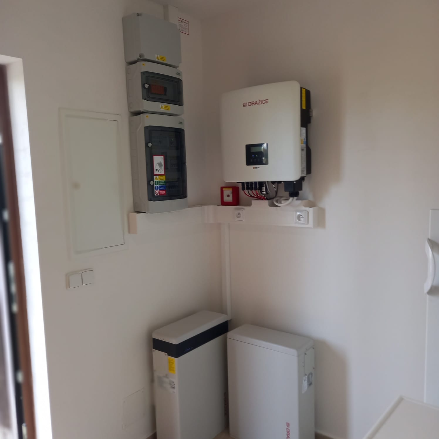 Instalace FV elektrárny na rovné střeše o výkonu 19,2 kW. Střídač 20kW a bateriové úložiště o deklarované kapacitě 17,4 kWh. Instalováno i STOP tlačítko pro okamžité vypnutí FVE.